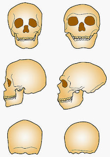 | Nykyihmisen ja neandertalinihmisen kallojen erot. Neandertalinihmisen kallo oikealla. (Lähde: Wikipedia) |
